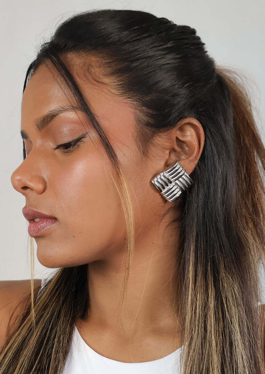 Eva Rectangle Earrings | Silver