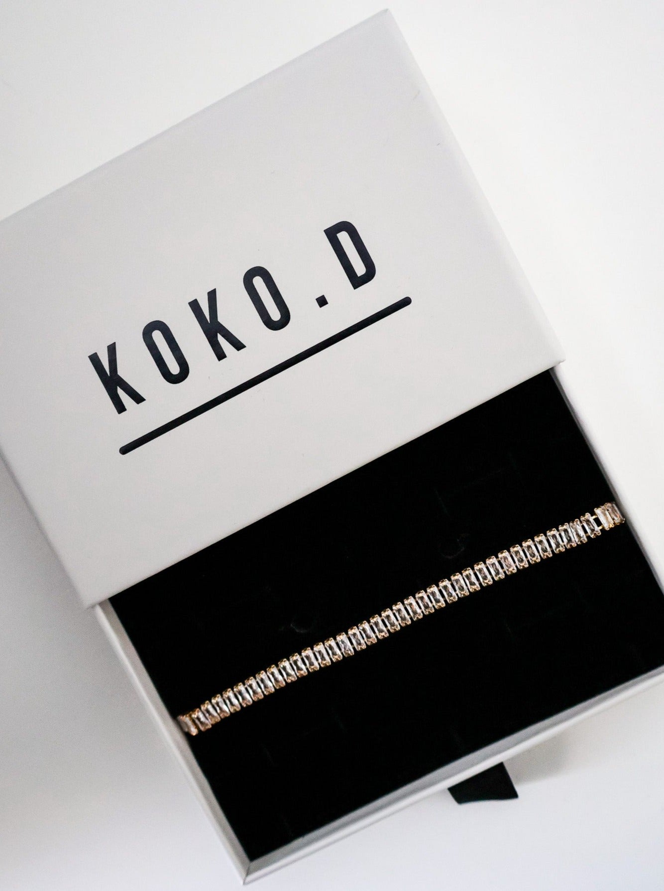 The Koko Tennis Bracelet with its waterproof design, is perfect for everyday wear, so you can show off its beautiful style without worry. Enjoy long-lasting shine and elegance with this bracelet.