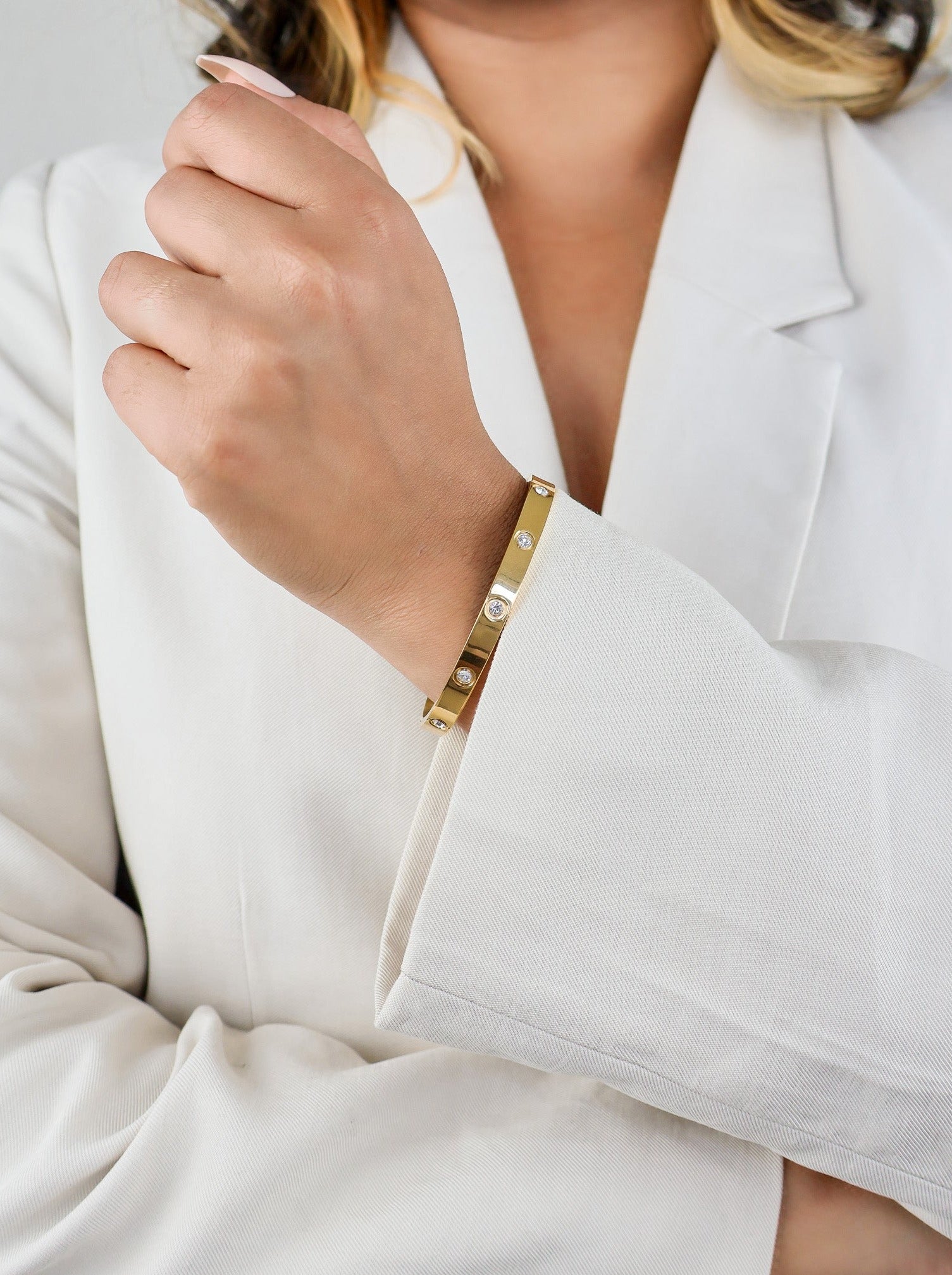 The Zoe Cuff Bracelet is an exquisite and stylish addition to any jewelry collection. Its non-tarnish finish provides a long-lasting shine, while the water-proof design keeps it looking great even in humid conditions.